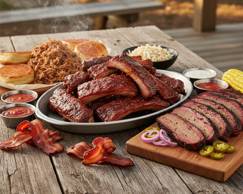 Our menu celebrates both tradition and creativity, offering a mouthwatering selection of slow-smoked ribs, juicy chicken, tender pork, and fresh fish, each seasoned and cooked to perfection. To complement our main dishes, we proudly serve a variety of savory side dishes—from classic barbeque favorites to chef-inspired twists that complete every meal.